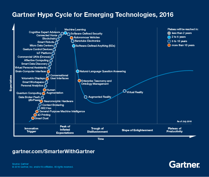 Emerging-Technology-Hype-Cycle-for-2016_Infographic_revise2Hype cycle – akik az informatika környékén mozognak, biztos találkoztak már ezzel a kifejezéssel. Ezt használja a Gartner elemző cég a technológiai trendek életciklusának leírásakor. Szó szerint „felhajtásciklus” lenne magyarul, de nem igazán tetszik, nem véletlen, hogy nem szokták lefordítani. Röviden összefoglalva, ezek a szakaszai: