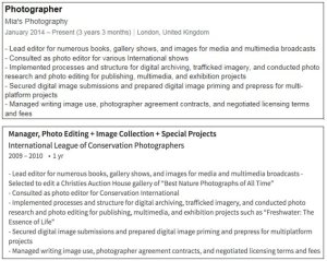 A LinkedIn adatai között ötszáznál több szakmai kapcsolatot találunk. Ezeknek nagyjából fele szintén fényképész. A másik fele viszont a feltételezett célközönségből kerül ki: középvezetők, műszaki vagy informatikai szakterületen, a technológiai, energetikai, egészségügyi, légügyi és tanácsadási szektorokban. Olyan emberek, akiknek tipikusan értékes hozzáférési jogaik vannak a cégük hálózatához.